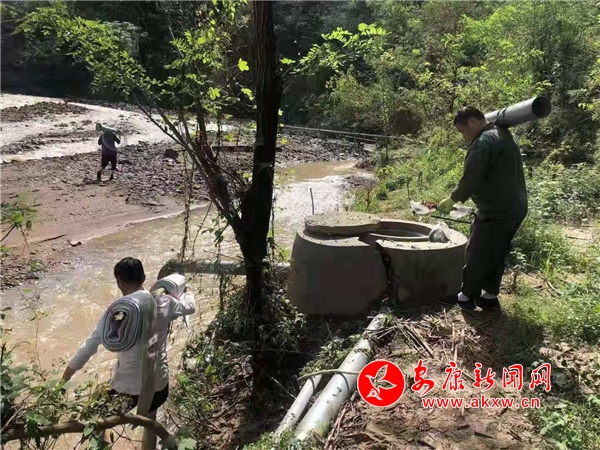 本網(wǎng)訊(通訊員 丁義良 楊娟)9月19日下午,五里劉營村水廠工作人員對水廠運行情況進行巡查時,發(fā)現(xiàn)進水口沒有水進,清水池水位下降,水廠人員立即前往龍王溝查找原因。他們一路淌水,沿河而上,發(fā)現(xiàn)是飲水鋼管山坡滑塌被整體推向河床,才致使多段管網(wǎng)損壞,水源地也被沙石堵塞、無法進水。