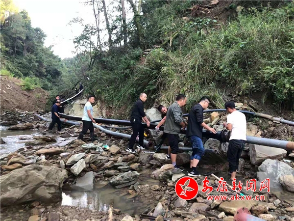9月20日,五里區(qū)域供水分站站長丁義良及時調劑管網(wǎng)、制作管件、組織專業(yè)技術人員趕赴支援。因這段管網(wǎng)屬山坡滑塌整體毀壞段,修復難度非常大,龍王溝中行走困難,需將這段鋼管改成PE管材,管網(wǎng)連接也需在龍王溝口完成。五里區(qū)域供水分站和劉營水廠又全力以赴組織搶修,克服施工條件差、搶修設備落后等實際困難,爭取時間盡快恢復轄區(qū)內供水,在搶修人員的共同努力下,歷經(jīng)48個小時的艱難搶修,管網(wǎng)修復完成,反應沉淀池水流響起,用戶水龍頭又嘩嘩響起來。