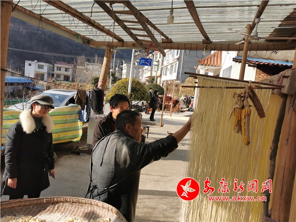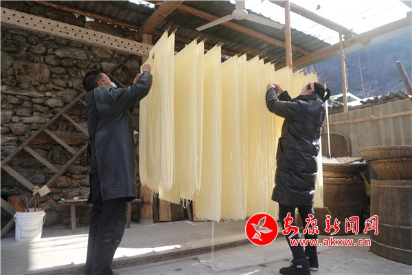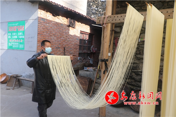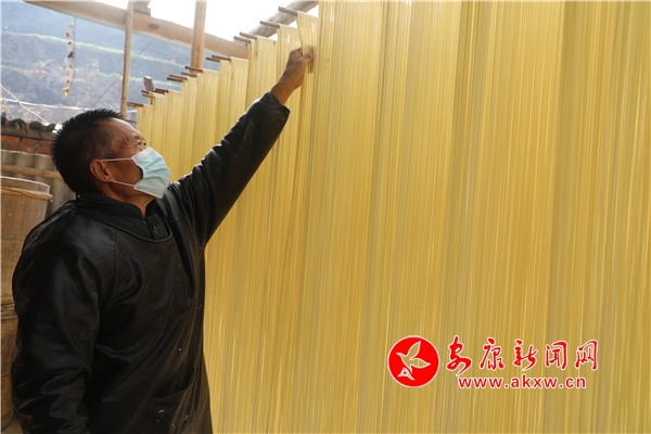 臨近春節(jié),家住漢濱區(qū)茨溝鎮(zhèn)東鎮(zhèn)社區(qū)6組村民任玉貴一家因手工鹽掛面的需求量增多,正加緊生產(chǎn)鹽掛面,和面、醒面、盤條、醒面、扯面、晾曬......今年62歲的任玉貴,已有42年的做面經(jīng)驗(yàn)。從19歲開始,他跟著本村老手藝人王師傅學(xué)習(xí)手工鹽掛面制作,他制作的掛面瓤而筋,口感好,易消化,能增進(jìn)食欲,舒暢開胃,老少皆宜。他加工的鹽掛面不僅銷往城區(qū)周邊,而且遠(yuǎn)銷西安、深圳、廣東等地?恐约呵趧诘碾p手,家里三間兩層的小樓蓋起來(lái)了,日子過(guò)的有聲有色。目前該手工技藝正在相關(guān)部門的幫扶下正在申請(qǐng)非遺文化傳承人項(xiàng)目。(鄭時(shí)根 攝)
