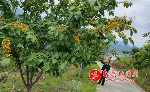 放眼望去,掛滿枝頭的櫻桃,猶如晶瑩閃爍的紅瑪瑙,水靈靈、紅艷艷,讓人口舌生津。行走在的山間路邊,綠色滿滿當當,沉甸甸的果實在綠蔭婆娑中遮遮掩掩。