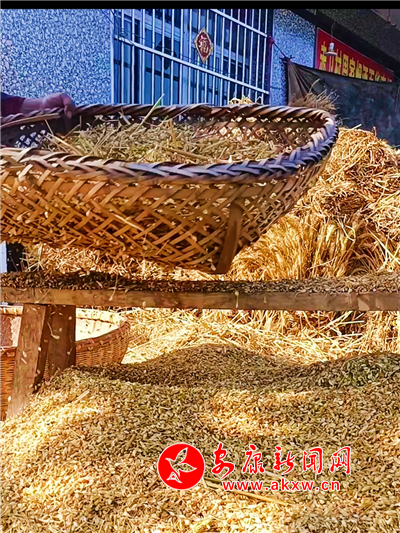 6月6日,驕陽似火。漢濱區(qū)赤衛(wèi)村周全洪一家忙得不亦樂乎,他戴著草帽和口罩,將麥穗一把一把喂進(jìn)脫粒機(jī),幫忙的鄰居們或抱捆持簸或木叉飛揚(yáng),妻子不停地晃動(dòng)手中竹篩,金燦燦的麥粒散落成堆,女兒夢蝶一邊端茶水遞毛巾,一邊用手機(jī)直播:“這是陜南農(nóng)村傳統(tǒng)的打麥子方式。”“形象很酷,動(dòng)作很帥……是不是?”“要吃富硒新麥子,可以呀!”益農(nóng)的“新農(nóng)具”,帶貨又漲粉。