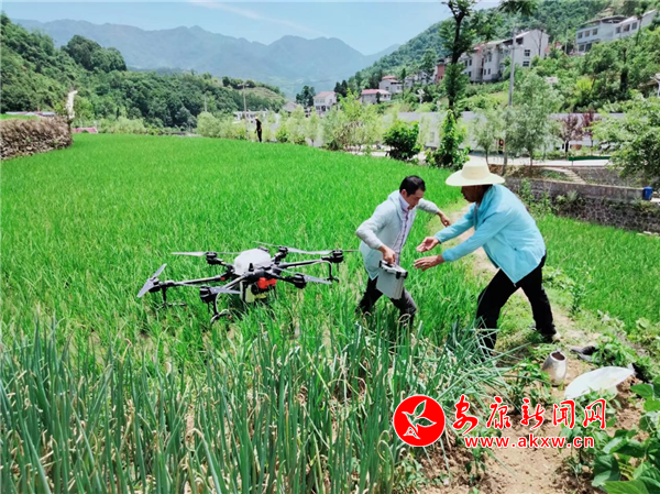 伴隨著一陣馬達(dá)轟鳴聲,裝載著殺蟲(chóng)劑的“植保無(wú)人機(jī)”在技術(shù)人員無(wú)線裝置遙控下,沿著水稻田低空飛行,實(shí)施水稻“一噴三防”作業(yè),吸引不少群眾駐足觀看。