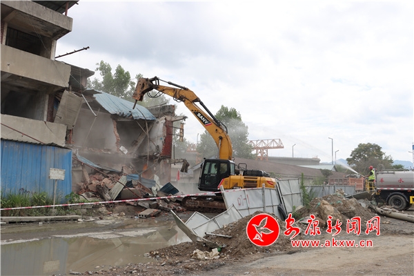 “開拆!”11時左右,隨著一聲號令,挖掘機、噴淋車雙管齊下,一道道墻壁應聲倒下,成為安康“兩橋一路”項目一標段啟動以來拆除的第一處房屋,標志著拆遷工作正式啟動。