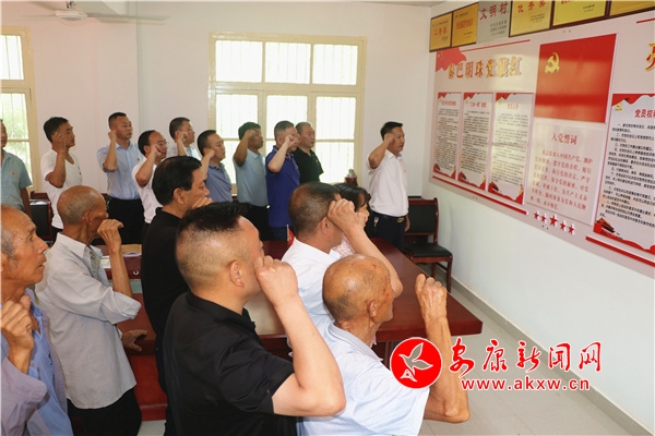 “我志愿加入中國共產(chǎn)黨,擁護黨的綱領(lǐng),遵守黨的章程……” 面對鮮紅的黨旗,全體黨員再一次舉起右拳,重溫了一遍入黨誓詞,把“不忘初心、牢記使命”錚錚誓言銘記于心;顒又,區(qū)行政審批服務(wù)局派駐興勝村第一書記汪紀文組織大家學習了黨的十九屆六中全會精神,村黨支部書記艾禮彥就學習貫徹省十四次黨代會精神講了一堂專題黨課,對李開軍等5名優(yōu)秀共產(chǎn)黨員進行了表彰。會議要求全體黨員要自覺加強學習,以優(yōu)秀黨員為榜樣,發(fā)揮黨員的先鋒模范作用,事事走在前、干在先,勇于擔當作為。加強支部聯(lián)建,互幫互學互補,扎實做好聯(lián)村幫扶工作,為鄉(xiāng)村振興貢獻力量。