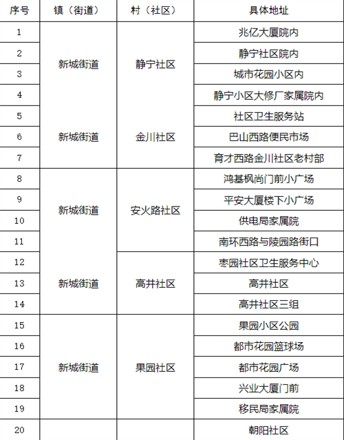 附件:漢濱區(qū)中心城區(qū)全員核酸檢測采樣點(diǎn)一覽表