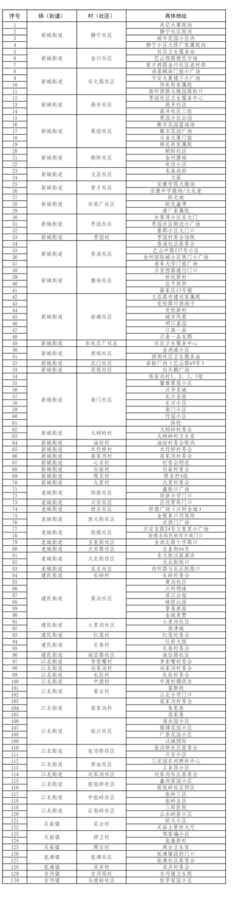 漢濱區(qū)老城街道辦、建民街道辦、新城街道辦、江北街道辦及張灘鎮(zhèn)、關(guān)廟鎮(zhèn)、吉河鎮(zhèn)中心城區(qū)范圍(具體見(jiàn)附件所列村、社區(qū))常住和流動(dòng)人員一律參加核酸檢測(cè)。