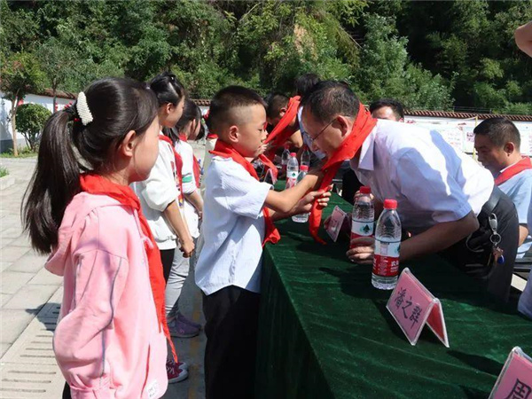 捐贈(zèng)儀式上,少先隊(duì)員向各位嘉賓敬獻(xiàn)紅領(lǐng)巾。校長(zhǎng)馮波向愛心企業(yè)、愛心人士對(duì)教育事業(yè)的大力支持表示衷心的感謝。