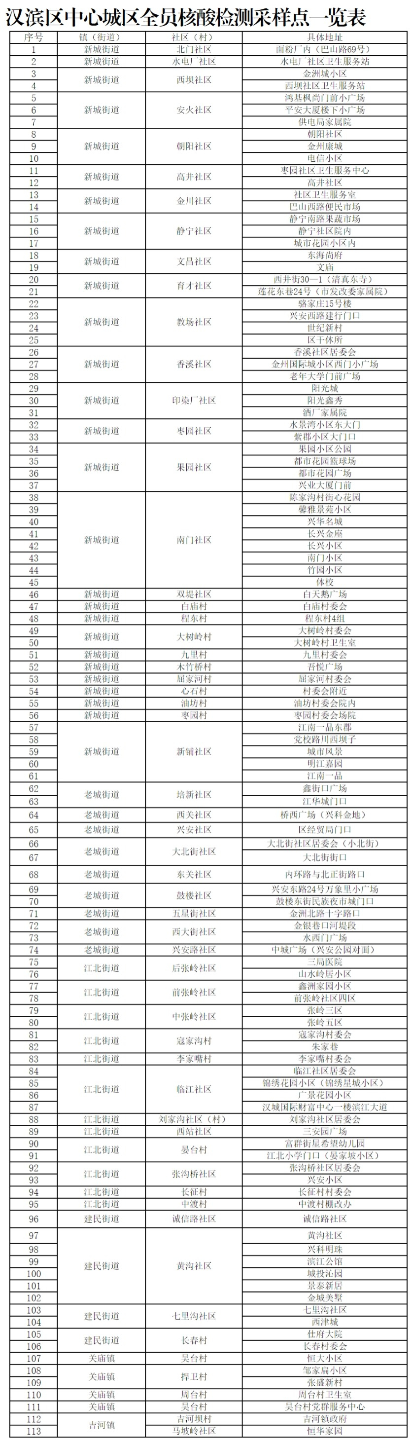 附件:漢濱區(qū)中心城區(qū)全員核酸檢測(cè)采樣點(diǎn)一覽表