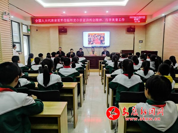 期間,宋亞平借助參會圖片,向雙龍鎮(zhèn)師生宣講了2023年全國“兩會”盛況及主要精神,希望山區(qū)學(xué)校組織師生深入學(xué)習(xí)宣傳“兩會”精神,迅速把思想和行動統(tǒng)一到全國“兩會”決策部署上來,認(rèn)真貫徹黨的教育方針,落實立德樹人根本任務(wù),堅持“五育并舉”,建立美育基地長效運(yùn)行機(jī)制,堅持以賽促學(xué),堅持美育與研學(xué)融合發(fā)展,扎實推進(jìn)學(xué)校美育工作走深走實,引領(lǐng)鄉(xiāng)村學(xué)校特色發(fā)展、內(nèi)涵發(fā)展;勉勵山區(qū)學(xué)生感恩奮進(jìn),樹立遠(yuǎn)大志向,刻苦學(xué)習(xí),用知識改變命運(yùn),用心觀察身邊生活,用心創(chuàng)作展示鄉(xiāng)村之美,抒發(fā)對美好生活的向往,展現(xiàn)愛黨、愛國、愛家鄉(xiāng)的情懷,在美育的熏陶下全面發(fā)展,努力成為德智體美勞全面發(fā)展的社會主義建設(shè)者和接班人。