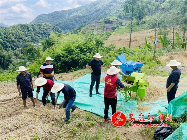 麥收時節(jié),漢濱區(qū)出現連續(xù)降雨,而成熟的麥穗最怕雨水,一旦遇上幾天連陰雨,金黃的麥穗很快就會發(fā)霉發(fā)黑長芽。為了做好搶收作業(yè),紅花村駐村工作隊協(xié)調了三臺半機械化農機調運到了現場,紅花村第一書記現場指導農機使用。鎮(zhèn)村志愿服務小隊戴著草帽、手拿鐮刀也到達了搶收現場,已經在幫忙收割了。