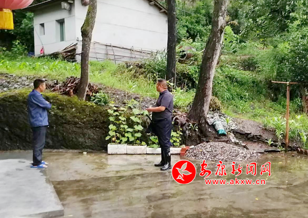 簡短布置任務(wù)后,“四支隊伍”工作人員趕赴本村9組的幾戶有滑坡危險的農(nóng)戶家,詳細(xì)查看其房前屋后情況,并叮囑監(jiān)測人及戶內(nèi)成員,要密切關(guān)注雨情變化,服從工作人員的安排,監(jiān)測部位每一小時要巡查一次。遇有異常情況要及時報告,并果斷采取撤離措施,第一時間將人員撤離到指定的安置戶家中,確保生命安全,同時要求鄰里之間的要發(fā)揮鄰里互幫作風(fēng),積極協(xié)助監(jiān)測人做好信息傳遞和人員轉(zhuǎn)移、撤離工作。