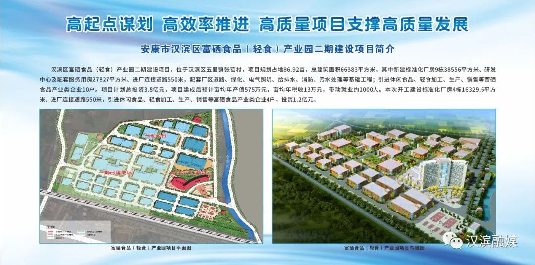 現場會在漢濱區(qū)富硒食品(輕食)產業(yè)園二期項目現場舉行。該項目由漢濱區(qū)五里產業(yè)園區(qū)投資開發(fā)建設有限公司投資建設,總投資3.8億元,項目將于2027年1月建成投產。項目建成后預計畝均年產值575萬元,畝均年稅收13萬元,帶動就業(yè)約1000人。
