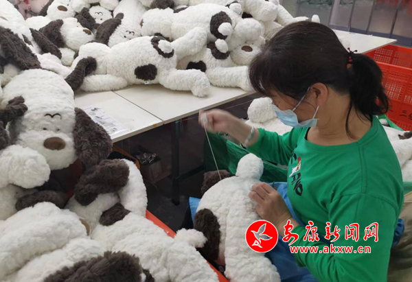 正月初十,五里工業(yè)集中區(qū)入園企業(yè)米小點(diǎn)品牌玩具管理有限公司生產(chǎn)車間內(nèi)一片忙碌景象:機(jī)器作業(yè)聲不絕于耳,流水線高速運(yùn)轉(zhuǎn),工人們神情專注、忙而不亂、緊張有序,一個(gè)個(gè)形態(tài)各異、栩栩如生的毛絨玩具從流水線上快速成型。