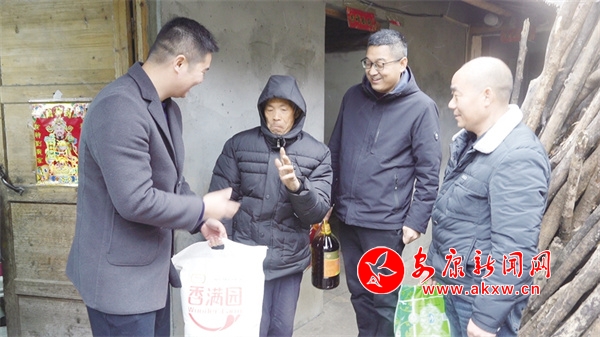 “過年好。恭喜發(fā)財(cái)!”“萬物呈祥榮盛世 九龍獻(xiàn)瑞慶良辰。這副對(duì)聯(lián)美得很。”“氣溫低,取暖注意安全。”漢濱區(qū)人社局派駐瀛湖鎮(zhèn)陽(yáng)坡村第一書記李大林和村黨支部書記晏真云一路邊和鄉(xiāng)親們打著招呼、送去祝福,邊叮囑著冬季取暖安全和森林防火等相關(guān)注意事項(xiàng),兩人徑直走到了村民晏世全家中。