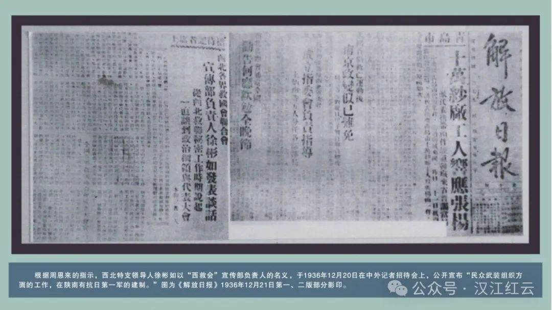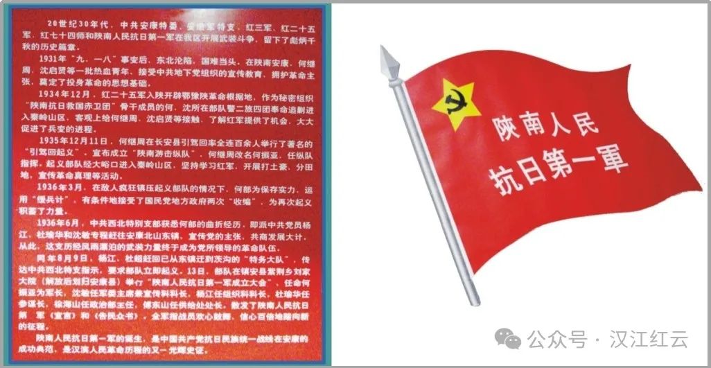 1936年8月13日,根據(jù)黨的指示,何振亞等人在紫荊河劉家大院正式宣告成立陜南人民抗日第一軍。何振亞任軍長(zhǎng),沈啟賢、杜瑜華任參謀長(zhǎng)。“西安事變”發(fā)生后,中共西北特支將陜南人民抗日第一軍交由中共中央代表羅瑞卿同志負(fù)責(zé)接收。1936年12月20日,根據(jù)周恩來(lái)同志的指示,中共西北特支領(lǐng)導(dǎo)人徐彬如以“西救會(huì)”名義在西安舉行中外記者招待會(huì)上公開宣布:“在陜南有抗日第一軍的建制”。至此,陜南抗日第一軍揚(yáng)名中外。