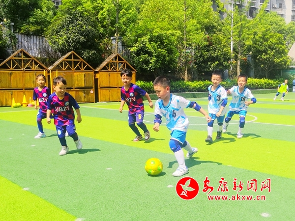 舉辦少兒足球嘉年華活動,旨在為全區(qū)幼兒園小朋友搭建學習交流足球運動的平臺,激發(fā)他們從小熱愛足球的熱情,培養(yǎng)他們的運動技能,讓孩子們在比賽中感受足球的魅力,享受運動的快樂,同時也讓他們在比賽中學會團結、拼搏、堅持和尊重。比賽設有“10 米運球往返跑”“10 米往返合作傳接球”“射門比賽”“5V5小型表演賽”4個比賽項目。來自11所幼兒園的代表隊參賽。