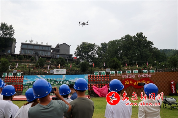 本網(wǎng)訊(通訊員 周濬)6月18日,在漢濱區(qū)大竹園鎮(zhèn)東旭茶莊上空,一架架植保無人機騰空而起,一邊飛行,一邊演示撒播作業(yè)。這是植保無人機學員在教練帶領下,在室外開展飛行練習。