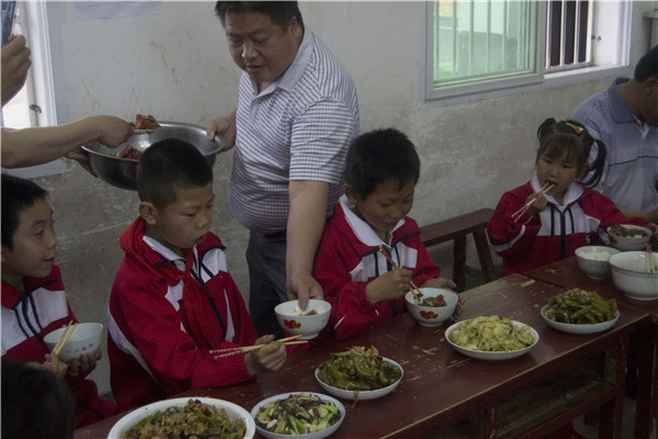 (校長(zhǎng)給孩子們添飯菜)