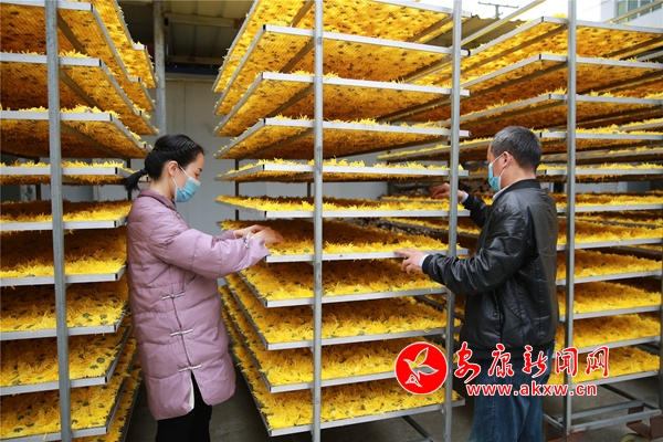 10月26日,在安康市漢濱區(qū)沈壩鎮(zhèn)花紅村,農民們正搶抓晴好天氣,采摘、分揀、烘干金絲皇菊。放眼望去,金燦燦的菊花點亮深秋田野,成為一道美麗的風景。2014年以來,該村根據本地土壤、氣候特點,采取 " 公司 + 合作社 + 農戶 " 的方式,引進能人,發(fā)展特色菊花種植50余畝,帶動30多名村民務工增收。(通訊員 吳亞君 文/圖)NKC安康新聞網