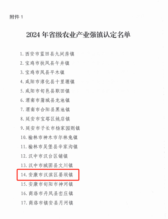 3月4日,陜西省農(nóng)業(yè)農(nóng)村廳公布2024年省級(jí)農(nóng)業(yè)產(chǎn)業(yè)強(qiáng)鎮(zhèn)認(rèn)定名單。其中我市漢濱區(qū)晏壩鎮(zhèn)名列其中。 tPb安康新聞網(wǎng)