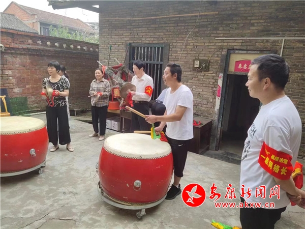 “咚咚鏘,咚咚鏘,咚鏘,咚鏘,咚咚鏘……”晚飯后,在五里文體中心廣場(chǎng),跟著老鼓手的敲打節(jié)奏,建立不久的五里社區(qū)鑼鼓隊(duì)正熱火朝天地練習(xí)。“空……