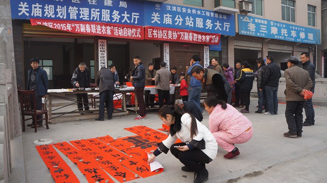為認(rèn)真貫徹文化部“文化進(jìn)萬家”活動要求,日前,漢濱區(qū)2015年“萬副春聯(lián)進(jìn)農(nóng)家活動”在關(guān)廟鎮(zhèn)金星村舉行。啟動儀式由區(qū)文廣局、關(guān)廟鎮(zhèn)、區(qū)文化館、區(qū)……