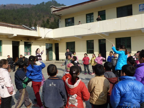 走出三星村,工作隊(duì)順程趕往五坪、清明寨、王家河三所小學(xué),實(shí)地了解學(xué)校部室設(shè)施、課程開設(shè)、教師配置、教學(xué)秩序、營養(yǎng)餐等情況。在王家河的校園里,12位縣教體局干部和44名小學(xué)生共同開展了一節(jié)輕松快樂的課外活動(dòng)。輕捷的身影在跳繩中跳來閃去,嫻熟的球技在乒乓桌上自如地?fù)]灑,稚嫩的歡呼聲飄蕩在校園的上空,甜蜜的笑臉綻放在溫暖的陽光中。