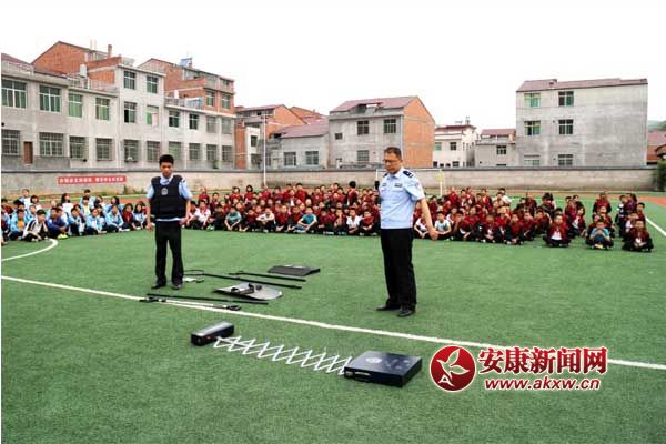 在活動過程中,該所副所長陳小兵先進行了法律知識講座。講座中,陳所長針對青少年犯罪的性質(zhì)、特點、根源,結(jié)合青少年的生理、心理特征,以生動的事例,詳實的資料,通俗的語言,解讀了一個個觸目驚心的青少年犯罪案例,給學生上了一堂生動的法制教育課。緊接著公安民警又向師生們展示了催淚噴射器、警棍、鋼叉、阻車器等警用裝備并模擬在遇到壞人時應如何正確使用這些警用裝備以便最迅速、有效地將壞人制服,師生們聽得聚精會神,博得了師生的陣陣掌聲。