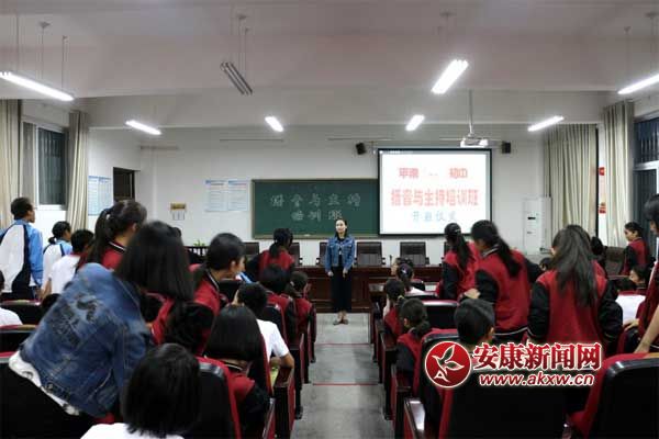 在舉行了簡短的開班儀式后,學(xué)校聘請的漢陰電視臺主播楊晶晶進(jìn)行了第一次培訓(xùn)。40多名播音主持愛好者參加了培訓(xùn)。培訓(xùn)中楊老師主要和同學(xué)們分享主持人臺風(fēng)和態(tài)勢語等方面的知識。楊老師惟妙惟肖地對主持人如何做到走姿站姿大方得體、微笑眼神交流傳神、肢體語言表情達(dá)意等向同學(xué)們進(jìn)行了細(xì)致講解。在理論講解的同時,又與同學(xué)們進(jìn)行了現(xiàn)場互動實踐練習(xí),同學(xué)們個個聚精會神,積極參與互動。楊老師幽默風(fēng)趣的授課贏得了陣陣掌聲,同學(xué)們在輕松愉快的課堂上既學(xué)到了專業(yè)知識,又在實踐中得到了專業(yè)技巧的點(diǎn)撥。