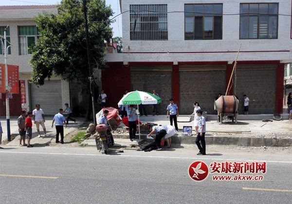 事發(fā)當(dāng)時(shí),一輛摩托車從316國(guó)道自西向東行駛,途徑漢陰縣雙乳鎮(zhèn)新塘村路口時(shí),發(fā)生交通事故。摩托車車主摔倒在地,被壓在摩托車下,其頭部流血,受傷程度較重,當(dāng)場(chǎng)昏迷。這時(shí),恰逢冒著酷暑入戶走訪的雙乳派出所民警途經(jīng)此地。民警立即上前查看情況并撥打“120”急救,隨即聯(lián)系交警部門到場(chǎng)處置。在等待救援的同時(shí),民警一方面疏散圍觀群眾,維護(hù)現(xiàn)場(chǎng)秩序,設(shè)立警戒區(qū),防止發(fā)生二次事故。同時(shí)驅(qū)車到附近醫(yī)院請(qǐng)求醫(yī)護(hù)人員到場(chǎng)救治;另一方面由于正值中午,天氣炎熱,氣溫達(dá)37℃左右,為防止傷者中暑,傷情進(jìn)一步惡化,民警從附近群眾家中借來一頂遮陽傘,站在烈日下為傷者打傘遮陽。