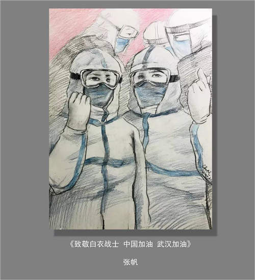 據了解,各學校師生在做好自身防控工作的同時,密切關注奮斗在抗疫第一線的英雄們,用自己的畫筆創(chuàng)作出形式多樣、豐富多彩的謳歌抗“疫”精神的作品,以發(fā)揮自己的一技之長,以書畫宣傳正確的阻斷疫情的方法,普及相關知識,呼吁人們尊重自然,保護生態(tài)環(huán)境,以書畫向最美“逆行者”們致敬。禮贊英雄,呼喚友愛,助力“抗疫”,致敬醫(yī)護人員,致敬在前線的英雄們。