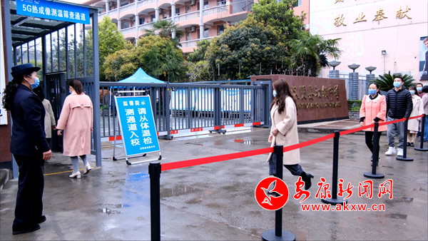 校門口是學(xué)生入校的第一關(guān)。演練現(xiàn)場,設(shè)置有5G熱成像檢測通道,安保人員組織“學(xué)生”有序排隊,“學(xué)生”們按要求保持間隔1米以上,接受身份核驗后依次從檢測通道的消毒墊上踏過。通道卡口測溫組的老師檢測“學(xué)生”體溫,體溫正常“學(xué)生”,順利進(jìn)入校園。