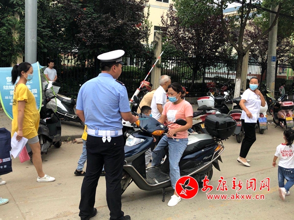 9月1日開學(xué)當(dāng)天,大隊(duì)安排各轄區(qū)中隊(duì)民輔警聯(lián)合老師、家長志愿者在各中小學(xué)、幼兒園門口路段執(zhí)行護(hù)學(xué)任務(wù),指揮疏導(dǎo)車輛,護(hù)送學(xué)生安全過馬路,同時(shí)嚴(yán)查校園周邊道路超速行駛、隨意調(diào)頭、亂停亂放、逆行、不禮讓斑馬線、“一盔一帶”等交通違法行為,全力站好新學(xué)期“護(hù)學(xué)崗”,緩解學(xué)校門口接送學(xué)生車輛集中通行和停放壓力,構(gòu)筑交通安全“防護(hù)網(wǎng)”。同時(shí)還組織民警以“七進(jìn)”為契機(jī)走進(jìn)轄區(qū)各學(xué)校門口路段向廣大師生及家長發(fā)放道路交通安全宣傳資料,增強(qiáng)師生們“知危險(xiǎn)、會(huì)避險(xiǎn)”能力。