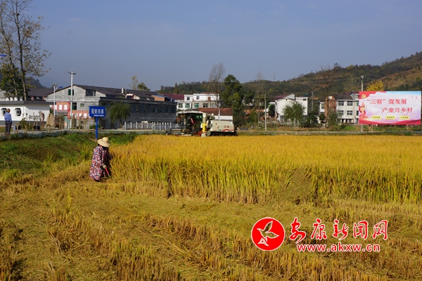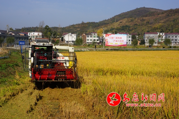 本網(wǎng)訊 (通訊員 黃小柳 晏彬)立冬之日,走進(jìn)漢陰縣雙乳鎮(zhèn)江河村,只見那金色的稻田旁鄉(xiāng)村小路蜿蜒而去,兩岸小樓拔地而起。風(fēng)兒輕拂,金黃稻穗低頭搖擺,稻香股股卷入鼻孔使人傾醉,稻田里的收割機(jī)唱著歡歌,正在稻田里來回穿梭,將沉甸甸的稻穗攬入“懷中”,為全年的辛勞付出畫上圓滿句號。