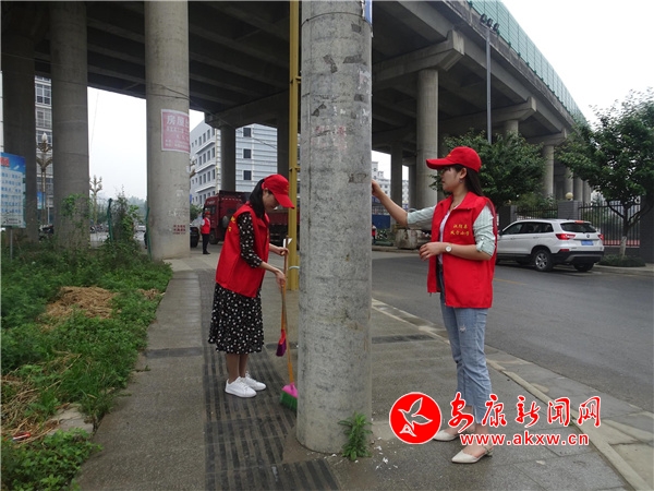 在清掃間隙,志愿者們還與周?chē)用窈炗啞堕T(mén)前“四自一包”責(zé)任書(shū)》,倡議大家自管環(huán)境衛(wèi)生、自護(hù)花木綠化、自覺(jué)維護(hù)秩序、自護(hù)公共設(shè)施和包抓衛(wèi)生責(zé)任,激發(fā)群眾的大局意識(shí)和責(zé)任意識(shí),號(hào)召大家共建干凈整齊的家園,并對(duì)部分居民隨地丟垃圾與沒(méi)做好門(mén)前衛(wèi)生的店主進(jìn)行文明行為勸導(dǎo)。