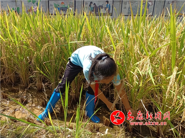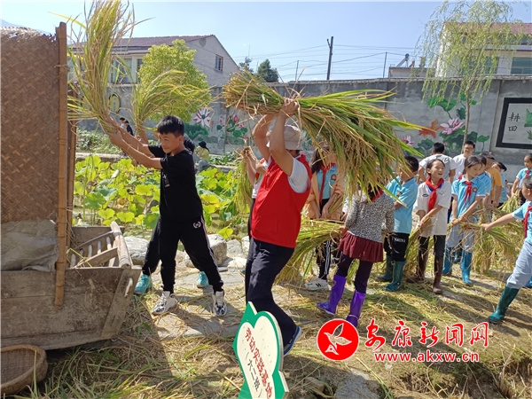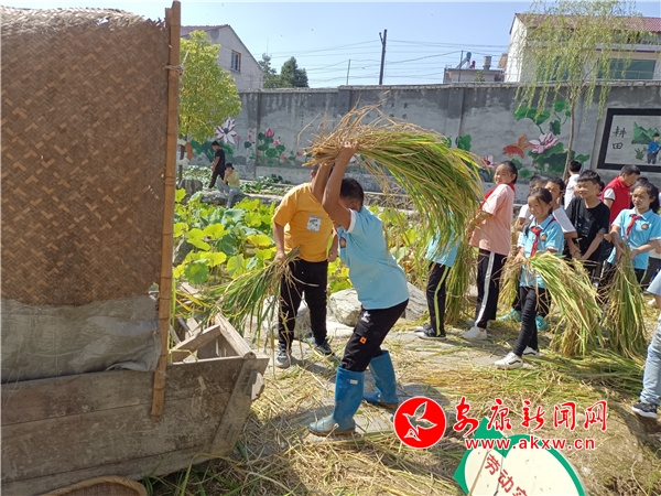 “同學(xué)們,你們看那一串串飽滿的稻穗掛在枝頭,長(zhǎng)得多喜人吶!現(xiàn)在我們要去收獲自己辛勤耕耘的勞動(dòng)果實(shí)了!大家要認(rèn)真學(xué)習(xí)怎樣割稻子,打稻谷,聽(tīng)從指揮,注意安全……”“老師,我要參與,我不怕累。”“我去年就學(xué)會(huì)了割稻子,今年我要學(xué)會(huì)打稻谷!”“我在電視上見(jiàn)過(guò),這個(gè)打谷子的工具歷史可悠久了。”