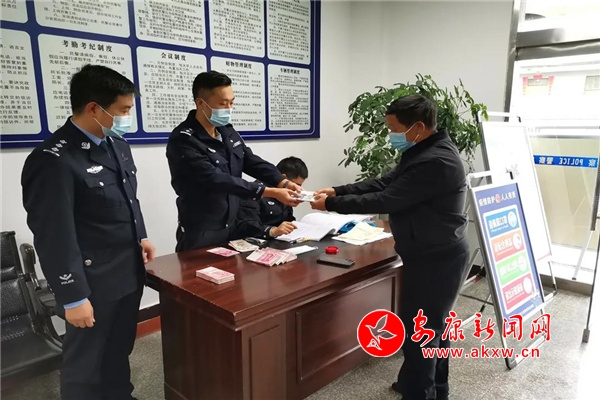近日,在勞動(dòng)監(jiān)察部門(mén)執(zhí)法人員見(jiàn)證下,城郊派出所代為兌付了伍某拖欠的李某、喻某等農(nóng)民工工資11萬(wàn)余元。拿到辛苦勞動(dòng)的“血汗錢”,在場(chǎng)農(nóng)民工激動(dòng)不已,自發(fā)向城郊派出所贈(zèng)送一面“威武秉公執(zhí)法 為民排憂解難”錦旗。