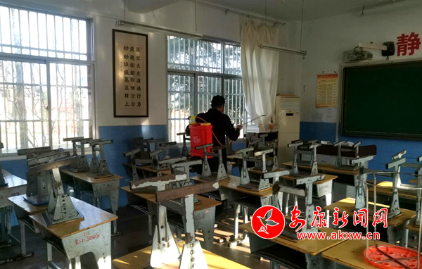 王懷軍為學(xué)生活動場所消毒 劉彩霞 攝