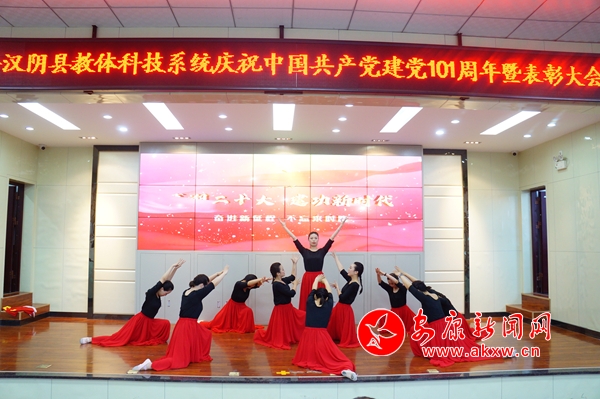 會上縣第四幼兒園展演了舞蹈《紅旗頌》,實驗小學(xué)黨員教師展示了微黨課《弘揚航天精神 吾輩砥礪前行》,漢陰初級中學(xué)和職教中心分別表演了詩朗誦《為有犧牲多壯志》和歌伴舞《愛永在》等精彩節(jié)目。局機關(guān)班子成員、部分鎮(zhèn)中心小學(xué)、單設(shè)初中、局直單位黨支部書記、受表彰人員代表、納新和轉(zhuǎn)正黨員參加會議。