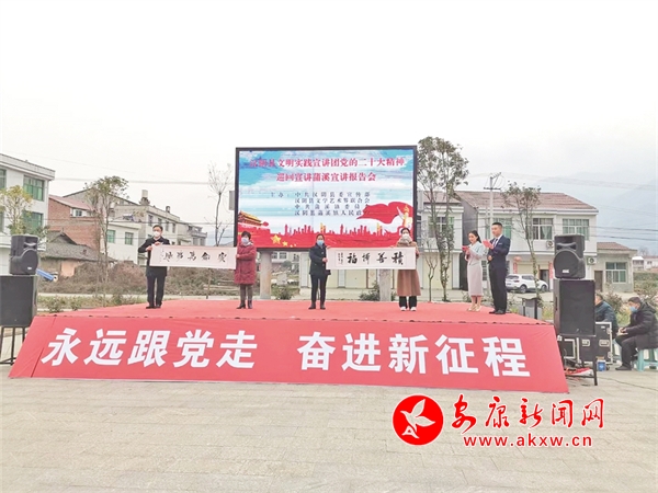 漢陰縣將黨的二十大精神宣講與新時代文明實踐有效結(jié)合,組建“文明實踐宣講團”,每場宣講由5名宣講團成員采取“拼盤式”宣講,理論骨干圍繞黨的二十大精神講理論,先進模范結(jié)合好人事跡講道德,一線干部圍繞“三農(nóng)”安排部署講政策,基層干部群眾圍繞“我們這十年”講變化,志愿者圍繞惠民服務講文明實踐。同時,“五講”活動中穿插進行文藝宣傳、為模范贈送書法作品、有獎問答等環(huán)節(jié),進一步增強了基層宣講的感染力、吸引力。