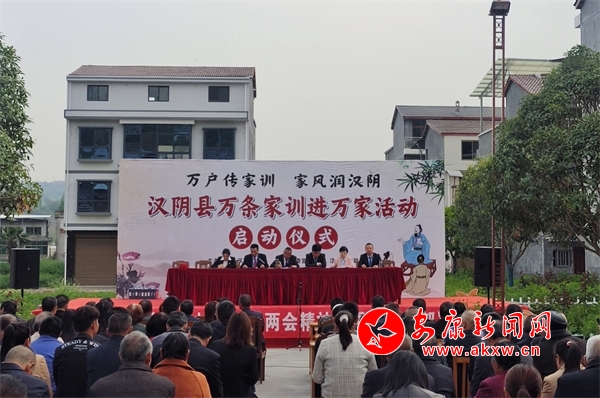 本網(wǎng)訊(通訊員 張輝)為傳承弘揚(yáng)傳統(tǒng)優(yōu)良家風(fēng),宣揚(yáng)文明向上的家風(fēng)文化,4月11日,漢陰縣以“萬戶傳家訓(xùn)、家風(fēng)潤漢陰”為主題,在城關(guān)鎮(zhèn)五一村舉辦了“萬條家訓(xùn)進(jìn)萬家”活動啟動儀式,推進(jìn)家庭教育和家庭美德建設(shè),營造良好的家庭環(huán)境和社會環(huán)境。