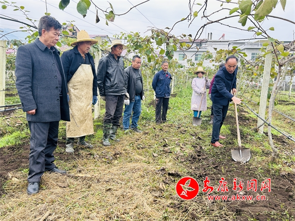 “獼猴桃園冬季管護,增施有機肥是改良土壤透氣性、增加土壤有機質(zhì)含量的重要環(huán)節(jié),施肥的時候一定要注意,要給樹上多少肥料,主要要參考一下樹體的大小,還要看一下它土壤的肥沃情況……”在蒲溪鎮(zhèn)溪畔社區(qū)的獼猴桃種植基地,縣獼猴桃工作站的技術(shù)人員正在給基地務(wù)工人員現(xiàn)場講解獼猴桃施肥的標準和要求,講解結(jié)束后,工人們便分散到不同的獼猴桃種植地塊中,有條不紊地進行著施肥等管護工作。獼猴桃冬季管護尤為重要,通過開展獼猴桃冬季管護工作,可以加深農(nóng)戶對獼猴桃冬季管護技術(shù)的掌握,也為獼猴桃安全越冬,實現(xiàn)豐產(chǎn)豐收、助力產(chǎn)業(yè)發(fā)展提供保障。