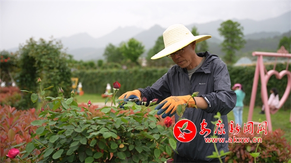 走進(jìn)澗池鎮(zhèn)君科玫瑰園,一朵朵盛開的玫瑰花嬌艷欲滴,紅色、黃色、粉色、白色……不同品種的玫瑰花爭相斗艷。一旁的工人正忙著鋤草、剪枝、布景,為應(yīng)對即將到來的游客高峰,今年玫瑰園早早做起了準(zhǔn)備。
