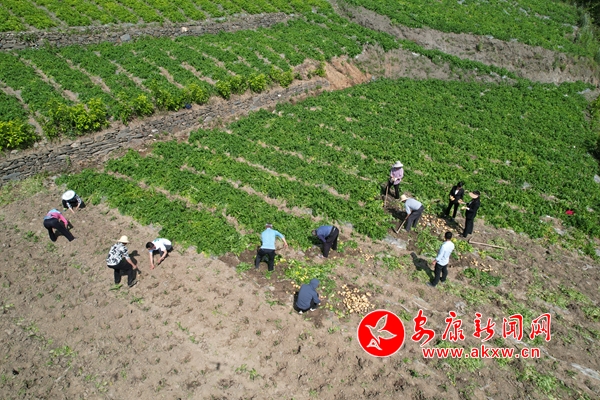 “大家加把勁兒,惠康源公司今天下午要2000斤土豆。”在漢陰縣雙河口鎮(zhèn)黃龍村的土豆種植基地里,駐村第一書記唐建安一邊忙著和村民一起采收土豆,一邊督促進(jìn)度。十余位村民分工有序,忙而不亂,隨著鋤頭的揮舞,一顆顆外觀飽滿、個頭勻稱的土豆破土而出,分揀、裝袋……田地里每個人的臉上都掛滿了豐收的喜悅。