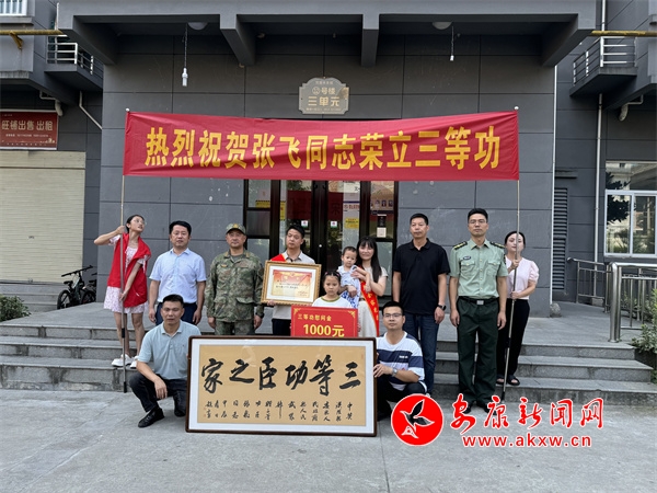 一張喜報、一枚“三等功”軍功章、一個立功牌匾、1000元的慰問金。在熱烈喜慶的氛圍中,一份份“喜悅”送到軍人軍屬家門口,對營造支持國防事業(yè)、尊重關愛功臣模范的社會氛圍意義非凡,左鄰右舍聞訊而來、交口稱贊。慰問組與立功受獎軍人家屬進行了親切交談,感謝他們?yōu)閲液蛙婈犦斔土藘?yōu)秀人才,并詳細了解家里生產生活情況,希望他們繼續(xù)支持孩子在部隊安心服役,為國防和軍隊現代化建設做出更大貢獻。