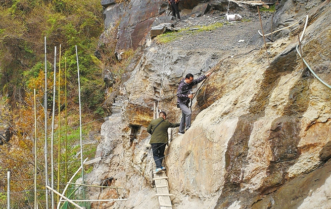 安康驚現“天路” 懸崖上架著不足30厘米寬木板