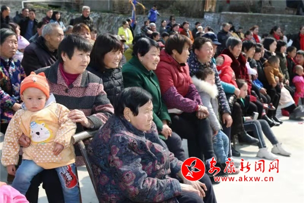 這場(chǎng)"幸福都是奮斗出來(lái)的"新民風(fēng)文藝演出在唐灣村"百姓大舞臺(tái)"拉開(kāi)帷幕,節(jié)目舞蹈《開(kāi)門紅》《祝福祖國(guó)》《幸福安康》;眉戶劇《梁秋燕》;快板《說(shuō)唱安康新民風(fēng)》;小品《豬八戒背媳婦》《幸福一家人》;小戲《黃四姐》;表演唱《大家喜歡》《逛唐灣》《五只小船》《龍船調(diào)》;二人轉(zhuǎn)《小拜年》;黃梅戲《夫妻觀燈》;道情《毛驢》等深受群眾喜愛(ài),節(jié)目精彩紛呈,現(xiàn)場(chǎng)處處洋溢著歡樂(lè)祥和的氣氛,給觀看演出村民帶來(lái)了一場(chǎng)視聽(tīng)盛宴。村民唐志海說(shuō):"我在漢中創(chuàng)業(yè)多年,今天觀看了這場(chǎng)勵(lì)志文藝演出,節(jié)目實(shí)惠、通俗易懂、很接地氣"。村黨支部書記唐志亮說(shuō):"唐灣村是全市第一年已脫貧村,通過(guò)黨建引領(lǐng)新民風(fēng)建設(shè),大力弘揚(yáng)誠(chéng)、孝、儉、勤、和,遵紀(jì)守法、精神文明建設(shè),精準(zhǔn)扶貧工作著力扶貧扶志、美麗生態(tài)鄉(xiāng)村、族規(guī)家訓(xùn)、經(jīng)濟(jì)發(fā)展等讓村民的幸福指數(shù)不斷提升,日子越過(guò)越紅火"。八十五歲高齡退休教師唐祖勝說(shuō):"過(guò)去村里逢年過(guò)節(jié)放電影、玩彩船、;瘕,文化生活豐富的很?稍谧罱鼛啄晡幕麄骰顒(dòng)少了,閑人聚在一起就是打牌賭博,讓農(nóng)村社會(huì)風(fēng)氣變了樣,今年政府倡導(dǎo)禁止煙花爆竹燃放,所以百姓大舞臺(tái)文藝演出便成了一種新時(shí)尚。.
