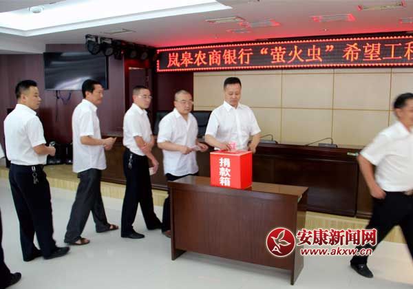 活動(dòng)中,該行黨委書記、董事長(zhǎng)熊宗新同志宣讀了倡議書,團(tuán)縣委少先隊(duì)總輔導(dǎo)員員李思琦為嵐皋農(nóng)商銀行“螢火蟲(chóng)”希望工程“信合筑夢(mèng)”信貸助學(xué)服務(wù)志愿隊(duì)授旗,農(nóng)商銀行機(jī)關(guān)及城區(qū)全體職工為貧困大學(xué)生進(jìn)行了現(xiàn)場(chǎng)捐款,共籌集現(xiàn)金一萬(wàn)余元,;與此同時(shí),在嵐皋農(nóng)商銀行各大網(wǎng)點(diǎn),也正在開(kāi)展此項(xiàng)愛(ài)心捐助活動(dòng)。HS7安康新聞網(wǎng)