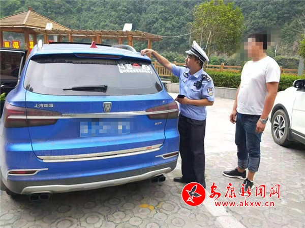 “當時我看這輛車的顏色和普通汽車的顏色很不一樣,車子表面在陽光的照射下會有反光,所以我們將他攔停并檢查。”中隊民警說,“攔下來一檢查,果然車主私自變更了顏色,該車行駛證上登記的車身顏色為白色,擅自將其變?yōu)樗{色,并且沒有變更登記事項。”
