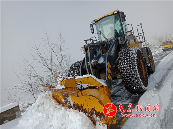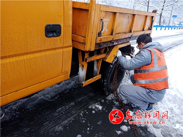 2020年1月7日嵐皋公路段職工在國道541線平利縣八仙真化龍山路段清理路面積雪。